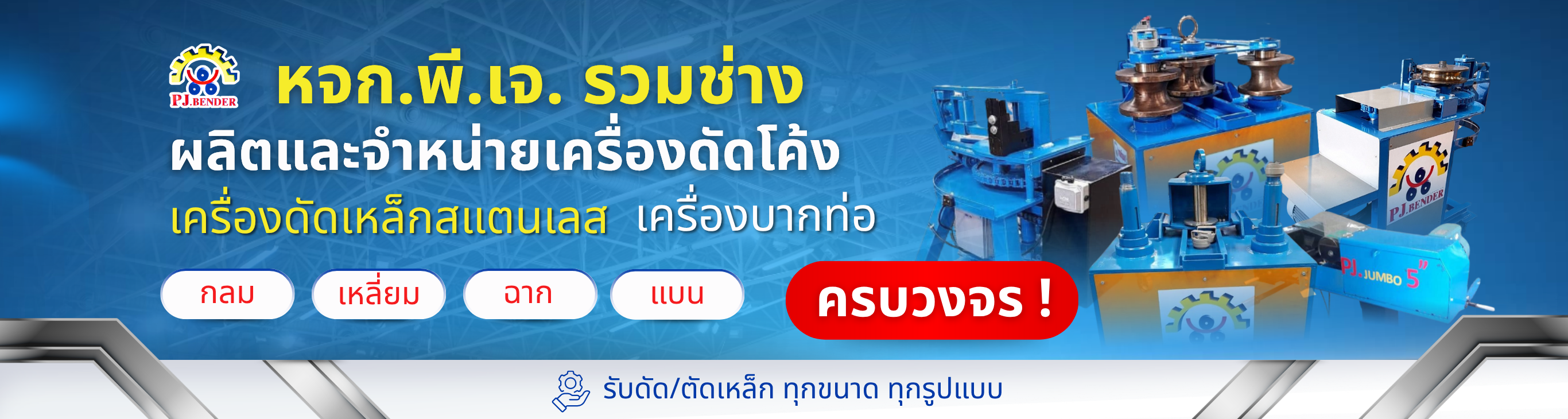 พี.เจ. รวมช่าง ผลิตและจัดจำหน่าย เครื่องดัดเหล็ก ขึ้นรูปชิ้นงาน และประกอบโครงสร้างตามแบบ ด้วยเครื่องจักรคุณภาพสูง โดยทีมช่างผู้ชำนาญการ เหมาะสำหรับงานโครงสร้าง งานตกแต่ง และงานสั่งทำเฉพาะทาง